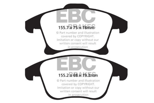 EBC 13+ Ford Fusion 1.6 Turbo Greenstuff Front Brake Pads