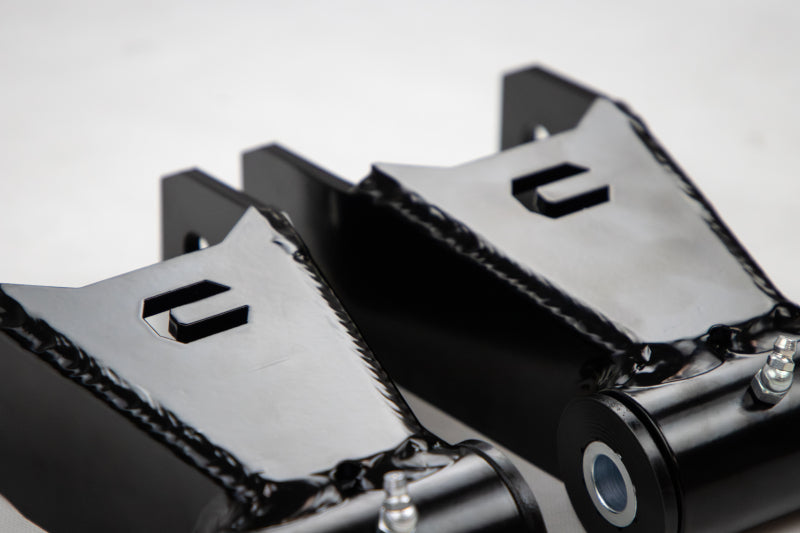 The Cognito 1” Drop Shackle for GM 2500/3500 trucks lowers the rear ride height by approximately 1”, allowing you to dial in your truck’s rake to meet your preferences. Made from quarter-inch steel plate and utilizing polyurethane pivot bushings, the Cognito drop shackle provides and improved ride quality over the vulcanized bushing found on OEM shackles.