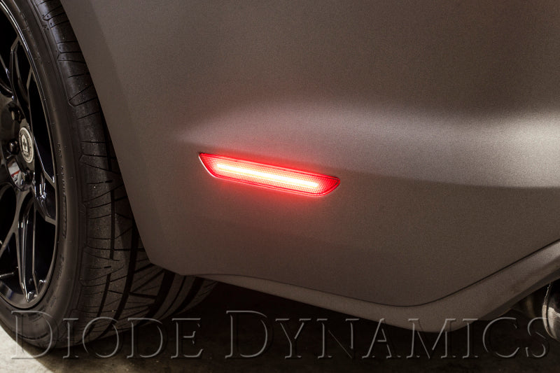 Features Modern LED replacements compatible with Ford Mustang 2015-2023 factory sidemarkers Increased output, with unique styling OEM-grade retroreflector optics Available in red, clear, or smoked lens options Engineered and assembled in USA Overview Upgraded Styling. If you're looking to give your vehicle an upgrade in styling and appearance, this is the perfect way to do it! These replacement units are loaded with hundreds of LEDs, for a modern and unique appearance. With the full LED array, they illuminate brighter than factory as well! Choose from three lens color options to match your vehicle or preference. OEM Grade. Unlike other sidemarkers on the market, Diode Dynamics lamps use OEM-grade retroreflector optics, which provide required the reflective safety and a clean, premium appearance when off, unlike "diffuser" or plain flat lenses without any reflective features. The units themselves are designed directly from OEM CAD data for a perfect fit, and the connector plugs right into the factory socket. Reliability. These LEDs are designed with newer constant-current circuitry and transient voltage protection. These features, found in factory-installed lighting components, protect the circuit over time, ensuring years of flicker-free performance.