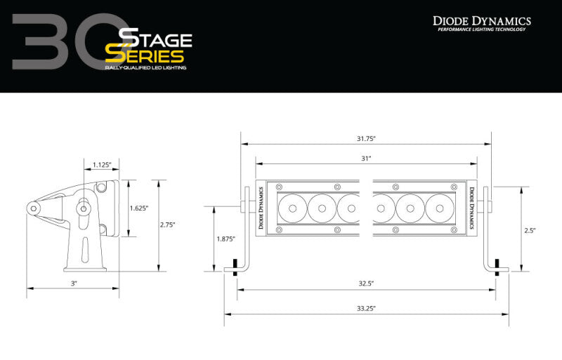 FeaturesAdvanced TIR optics provide high efficiency and focusHigh-intensity automotive-type LEDs with pure white colorAvailable in Driving Flood or Combo beam patternsSlim 42mm housing for low-profile fitmentDurable matte powdercoated extrusionCompact. The lightbar is based on a narrow-profile extruded housing to allow fitment in small and tight areas. At less than 42mm tall they'll fit in many places a traditional dual-row light bar won't while cutting total weight as well.Focused. Thanks to the high-intensity Lumileds LED chips coupled with our U.S. PATENT PENDING total internal reflection (TIR) optic the total intensity is far higher than a standard generic light bar. The TIR optic collects all of the light from the LED and directs it only where you need it drastically reducing glare and improving total efficiency.Functional Patterns.The Driving pattern was designed to supplement your high beams. Rather than a simple spot pattern the Stage Series Driving pattern has a rectangular 30x20 degree pattern that is far more useful for directing light downrange at high speeds.The Flood pattern was designed to provide uniform even illumination and a full 80x50 degree spread of light. Unlike generic flood light optics that are simply a heavily diffused spot our flood optic is a true optically designed spread resulting in the biggest spread in the industry! It is perfect for lighting up anything at low speeds a backup or reverse light or to light up a worksite.The Combo pattern combines both the Driving and Flood optics. It shines light downrange in a focused rectangular 30x20 degree pattern while also illuminating area around it in a full 80x50 degree spread.