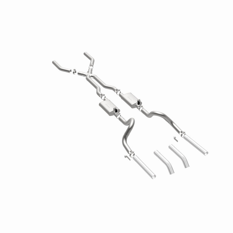 The MagnaFlow 1967-1970 Ford Mustang Street Series Crossmember-Back Performance Exhaust System brings enhanced engine sound and dyno-proven performance to your 3.3L, 4.1L, 4.7L, 5.0L, 5.8L, 6.4L, 7.0L 1967-1970 Ford Mustang with a healthy helping of our deep, resonant signature exhaust note at Aggressive exterior and Moderate interior sound levels. Thanks to its durable, corrosion resistant stainless steel design, this Ford Mustang exhaust system will handle whatever tarmac you decide to leave your mark on. This performance exhaust kit features a crossmember-back layout designed to replace your Ford Mustang's exhaust system from the crossmember on back. With its fast-flowing, mandrel bent 3in. main piping and 2 Straight-Through mufflers ending in a Dual Split Rear exit that you can enhance with tips of your choosing, your muscle car will be sounding as awesome as it looks. Extensive 3D scanning during development has resulted in a direct-fit design that you can easily install yourself. 15819 is produced using CNC precision robotic manufacturing techniques and is backed by MagnaFlow's limited lifetime construction warranty.