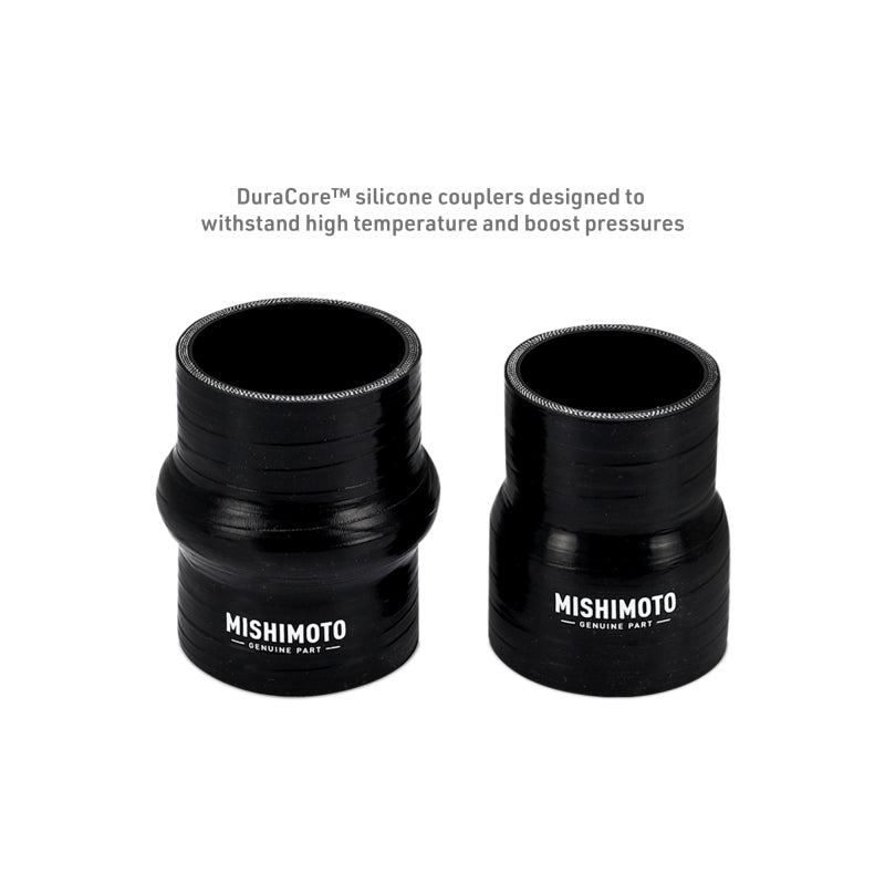 Upgrade your 2024+ Ford Mustang EcoBoost with the Mishimoto Intercooler and Pipe Kit, a complete system designed to maximize airflow, lower intake temps, and boost performance. This kit combines a direct-fit bar-and-plate intercooler with high-flow hot-side and cold-side aluminum pipes, delivering safe, tune-free power gains.--The intercooler features cast aluminum end tanks and fits in the stock location with a 60% increase in core volume. Oversized 63mm inlets/outlets improve flow, while a diverter plate ensures even air distribution. Foam sealing strips and a custom-formed air deflector maximize airflow through the core and reduce NVH. Four EPDM rubber sandwich mounts isolate vibration and add rigidity. Gains of up to 12 hp and 11 ft-lbs of torque are possible with no tuning, and a pre-drilled NPT port allows for auxiliary sensors or data logging.--The included intercooler pipes are made from durable aluminum with cast connections for strength and precise fitment. A cast turbo outlet elbow integrates the blow-off valve seat and retains factory harness clipping points for a clean install. CNC-machined quick-disconnect fittings, DuraCore™ silicone couplers, high-torque worm-gear clamps, and an ID-matched transition coupler ensure secure, high-flow connections. Extra clearance also allows compatibility with the Mishimoto performance radiator.--Available in polished or wrinkle black finishes, the Mishimoto Intercooler and Pipe Kit provides improved airflow, reduced intake temps, better underhood aesthetics, and long-term durability. Installation is straightforward with all hardware included, and every kit is backed by the Mishimoto Lifetime Warranty.