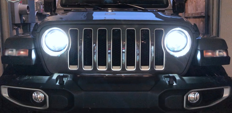 Complete Package for adding High-Performance 7" LED Headlights to your Wrangler JL/Gladiator JT without any fabrication or cutting your factory wiring. This complete Plug-&-Play kit also features Vertical and Horizontal headlight adjustment so you can put the light on the road (where you need it) and not blind oncoming traffic. The Ultimate 7" LED replacement headlight option for the Wrangler JL/Gladiator JT. This rugged solid-state LED design is perfect for the Jeep owner looking for high-quality lighting for better night time visibility without overpaying. Installation is very easy with the included JL/JT-specific “Plug and Play” connectors. You can even choose optional colored Halos for even more customization! Note: DRL wire cannot be used as a power source - Tapping into Park Lights will give manual control over LED accessory during daytime driving - LED accessory will turn on automatically in night mode when switch is set to AUTO - For full automatic control over the LED accessory use fuse F52 in the engine compartment fuse panel.