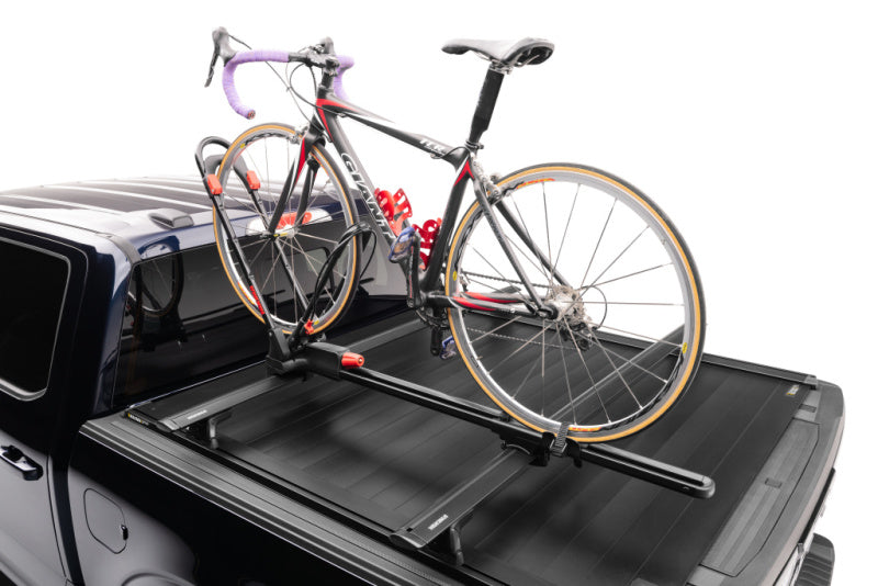 The XR Series combines the PRO MX with the integrated Trax Rail System that allows for unique and personal customization above your tonneau cover. The RetraxPRO XR, our premium Aluminum Series cover, combines industrial strength aluminum construction with an incredibly resilient matte finish. The XR Series optimizes cargo capacity with the cover open or closed, providing the ultimate versatility in cargo management. The Trax Rail System will work with most T-slot accessories from Yakima, Thule, Rhino Rack and many more offering endless possibilities. Pairing the Trax Rail System with accessories offers double the cargo capacity. This unique technology frees up the hitch with the ability to mount bikes, coolers, outdoor gear and more on top of the bed cover by combining the Trax Rail System with the t-slot accessories.